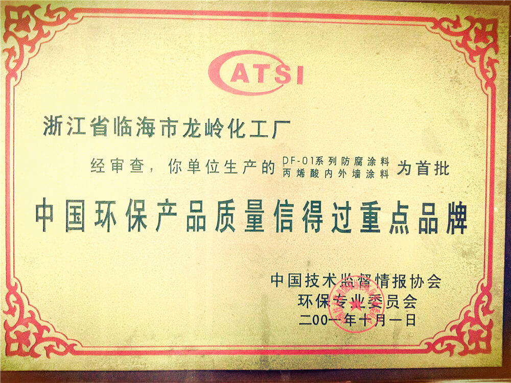 • 2001年中國環(huán)保質(zhì)量信得過重點品牌證