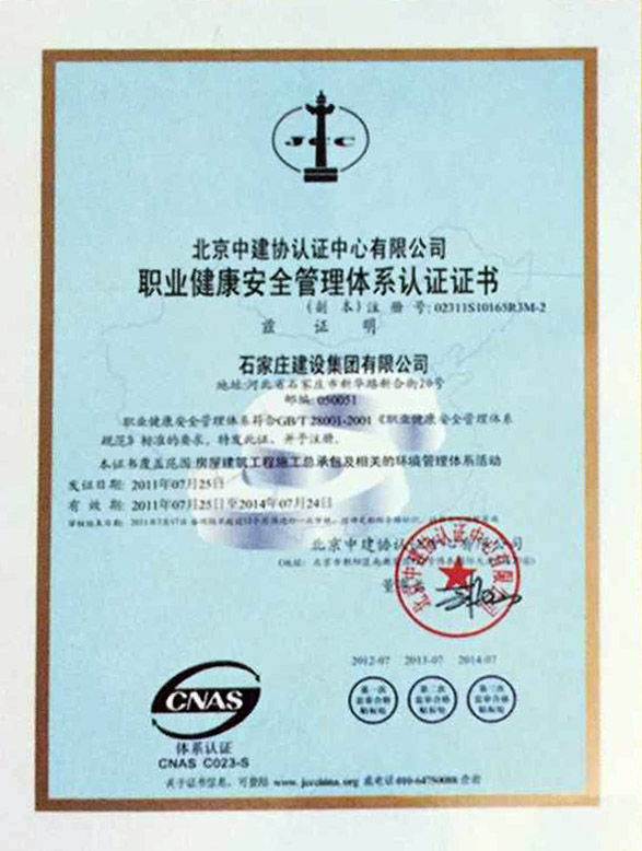 職業(yè)健康安全管理體系認證證書