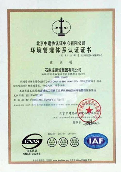 環(huán)境管理體系認證證書